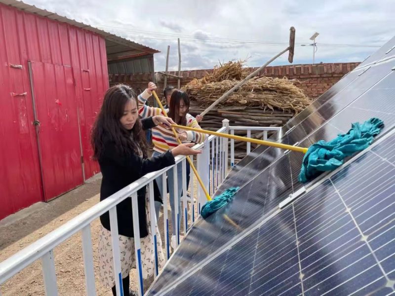 開投集團(tuán)機(jī)關(guān)黨支部43名黨員和9名積極分子按照4名同志包聯(lián)1戶的安排,對(duì)沙爾沁鎮(zhèn)26戶扶貧戶的農(nóng)村分布式光伏發(fā)電項(xiàng)目進(jìn)行維護(hù),并清洗光伏板。