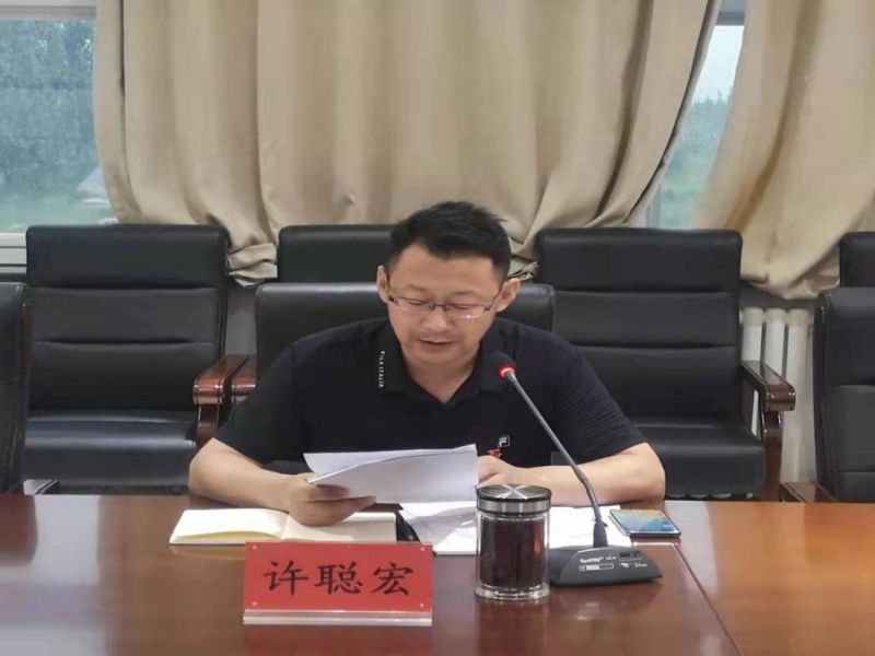 圖為黨委書記許聰宏傳達(dá)學(xué)習(xí)內(nèi)容